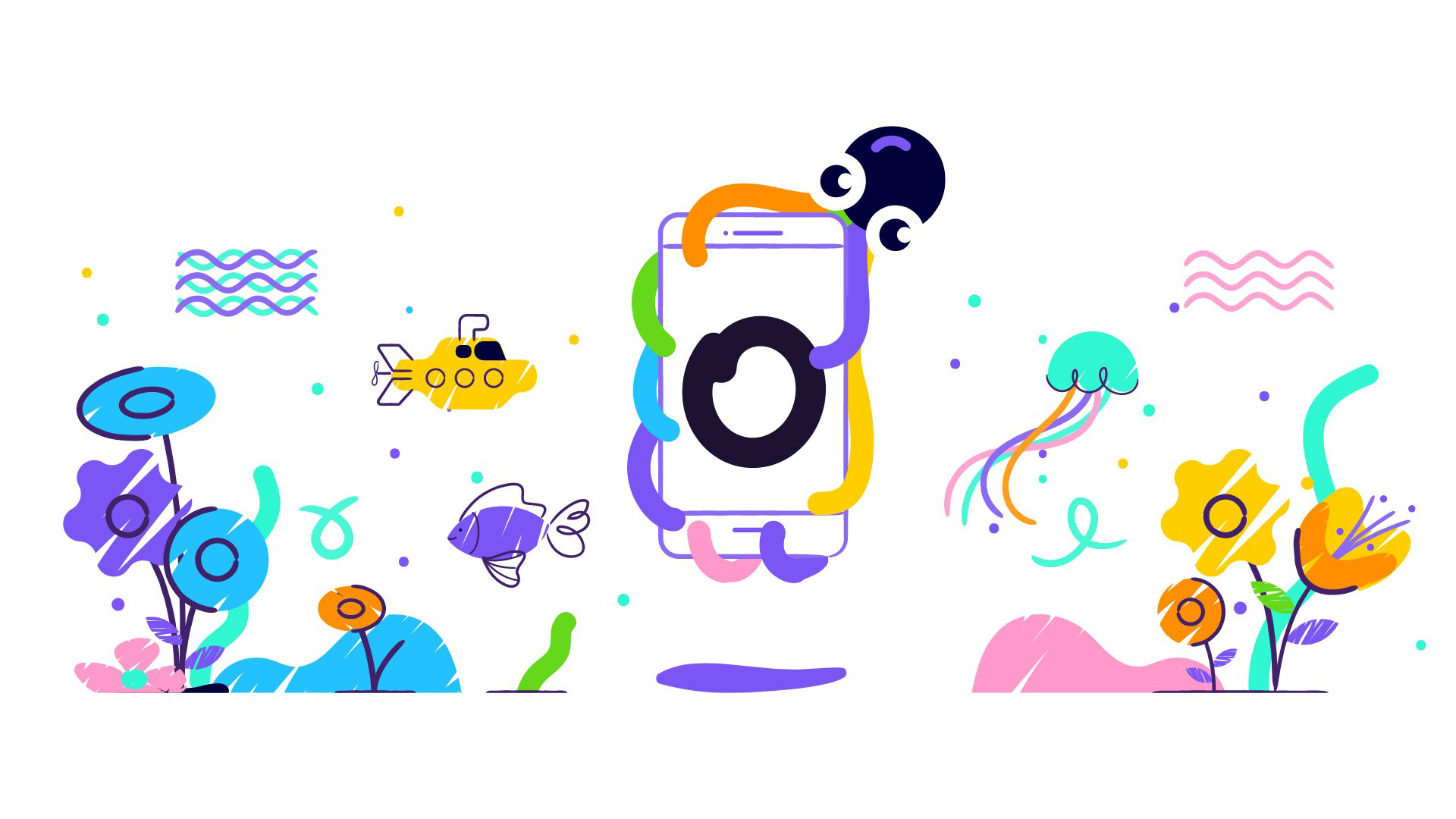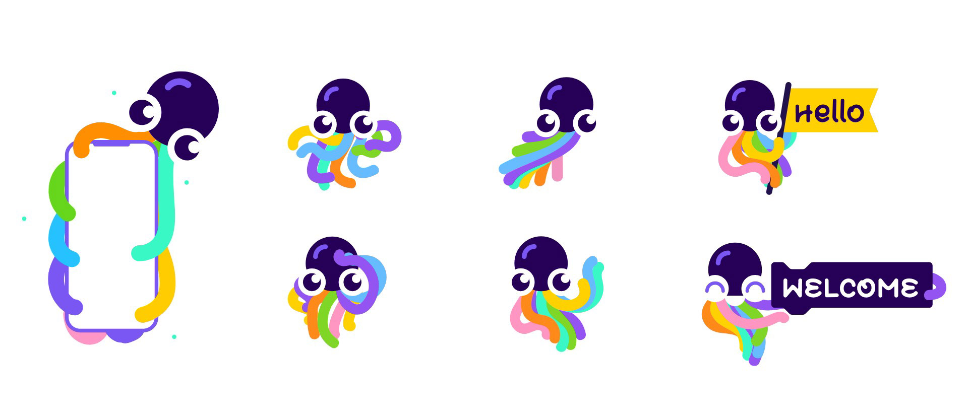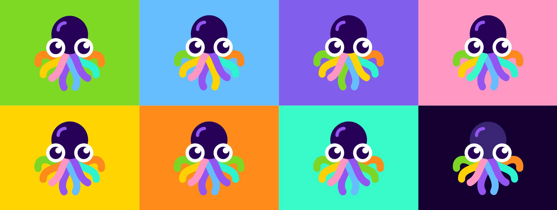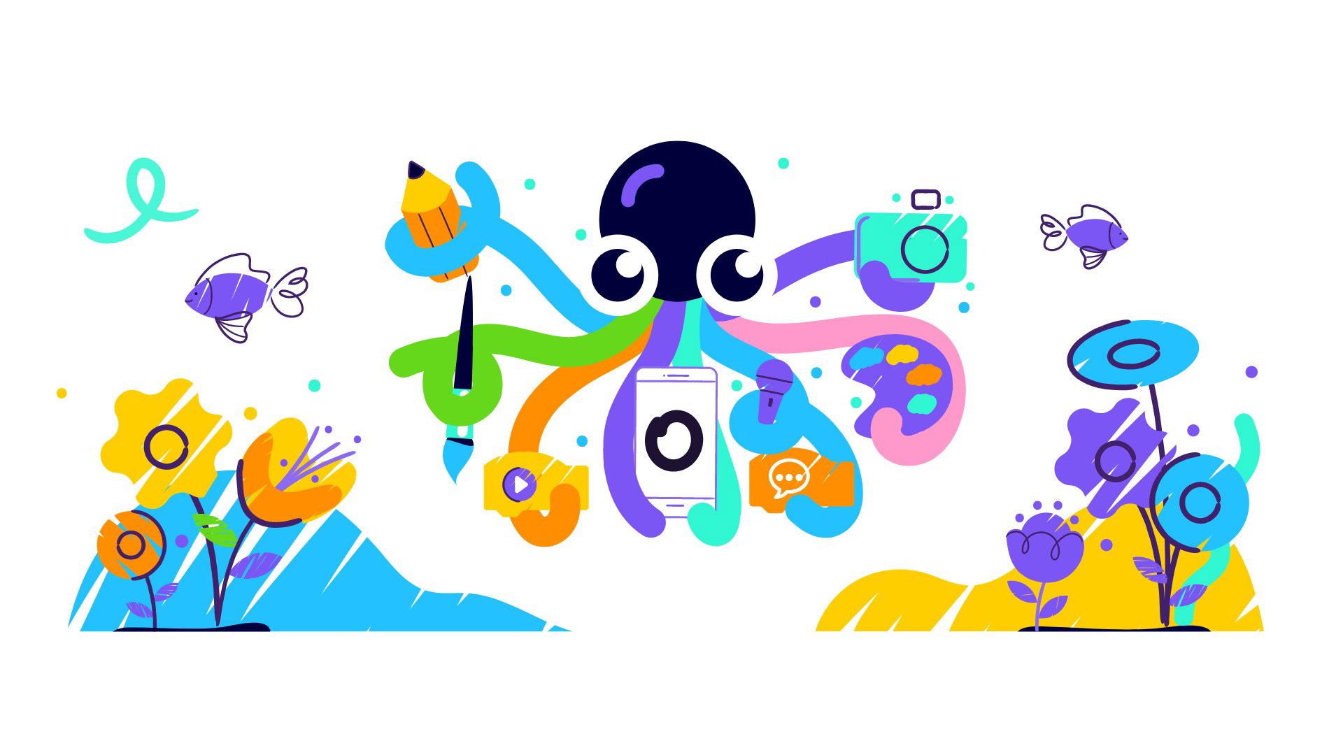 We chose the octopus as our symbol because it represents the boundless possibilities of the creative process. Its tentacles unfold into colorful lines that cross and fill our visual layouts. This concept of the "moving point" is a fundamental element of visual art and design, as Kandinsky famously observed.